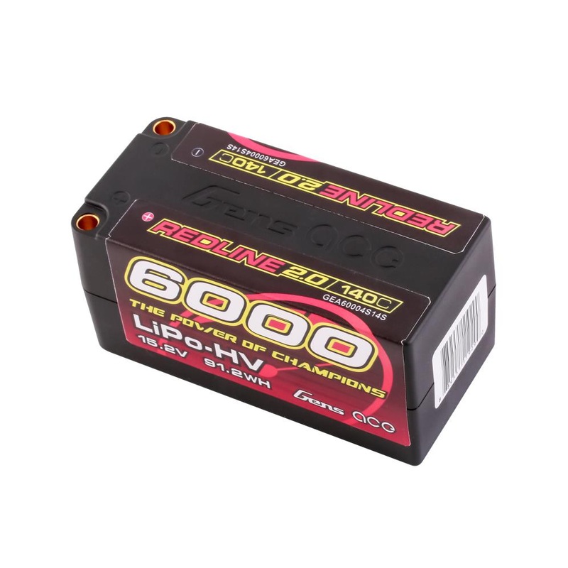 Gens Ace Redline 2.0 Series 4S 140C 6000mAh Hardcase LiPo Battery Pack, with a factory installed 5.0mm bullet. Consumers trust the Gens Ace name to deliver the dependability and high performance they expect. The Gens Ace 140C 4S 6000mAh 15.2V HV LiPo battery pack has a high-capacity, high-discharge rate that gives you the power and run-time you expect .