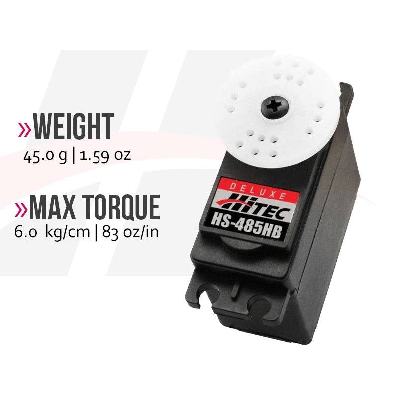 Hitec HS-485HB Standard Analogue Cored Servo 45g 6kg/0.18s 4.8V - 6.0V 2213270The HS-485HB updates the very popular HS-475HB by adding more torque and greater speed. With its top ball bearing, heavy duty, high impact Karbonite gears and high performance ci