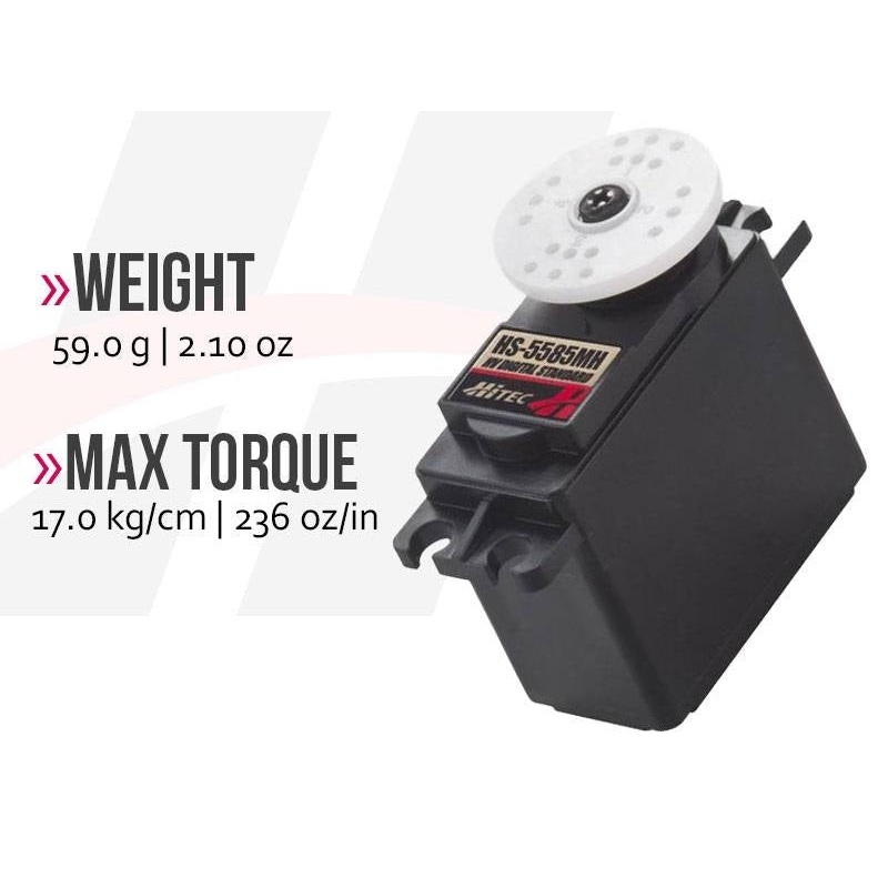 Hitec HS-5585MH Standard Digital Coreless Servo 60g 17kg/0.14s 6.0V - 7.4V 2217670HS-5585MH Economical High Torque Digital Coreless ServoIncrease your performance not your budget with the high voltage, high torque, digital HS-5585MH. Featuring a high perfo