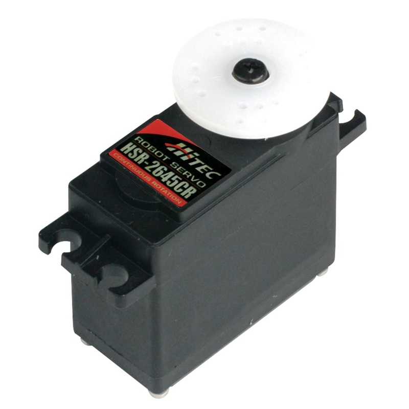 Hitec HSR-2645CR Standard Digital Cored Servo 53g 12kg/1.2s 4.8V - 6.0V - 7.4V 2222420A standard-size, metal gear, high torque servo with 360deg rotation.Demand for continuous rotation servos in robotics has given rise to this powerful little high-torque u