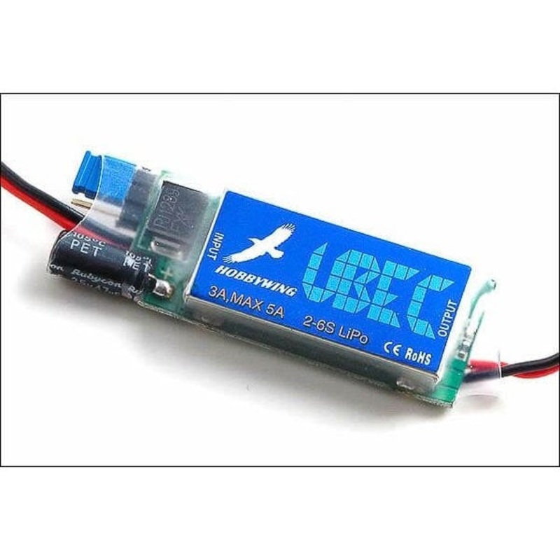 Hobbywing BEC Controller UBEC 86010010 The 3A-UBEC is a switch mode DC/DC regulator, it outputs a consistent safe voltage for the receiver, gyro and servos. It is very suitable for RC helicopter and other RC models especially when the built-in BEC in the s