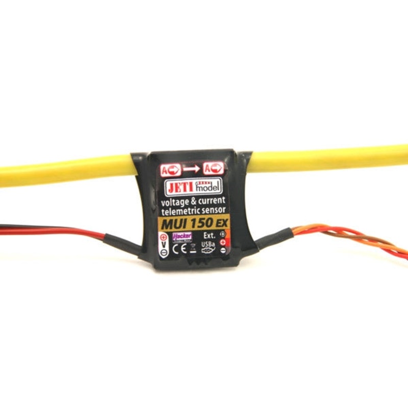 Jeti Duplex 2.4EX MUI 150 JEX-MUI-150Assignment of the MUI EX sensor is measurement of voltage, current and consumed capacity of flight batteries in the model. The wireless data transmission by the DUPLEX 2,4GHz system is monitored by the JETIBOX terminal.