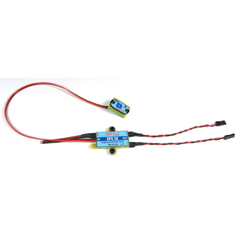 SPS 20 Electronic Switch 10A from Jeti Model J-SPS-20The DPS 40 (twin electronic switch) and SPS 20 (single electronic switch) are electronic switches mainly meant to switch supply voltages of receivers / servos, regulators, fuel pumps or similar equipment