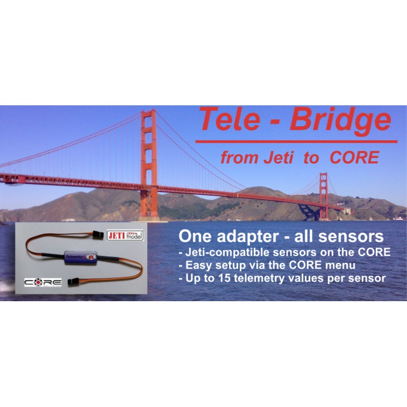 Jeti toPowerbox Core Telemetry Bridge from Smoke SystemsThe Telemetry-Bridge connects Jeti-compatible sensors to the telemetry bus (P-Bus) of the PowerBox CORE.In this context, sensors are e.g. Height measurement, engine controls (ESC), turbines ECU and mu