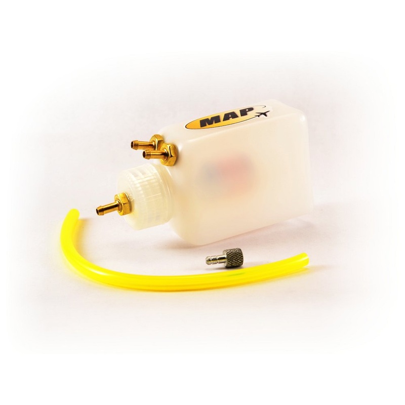 MAP Hi-Flow Air Trap 4 oz UATRedesigned air traps with a longer 2" replaceable pickup filter!This air trap can be installed in any position, providing you get the air out when filling.It can also be easily drained if you want to transport the airplane via