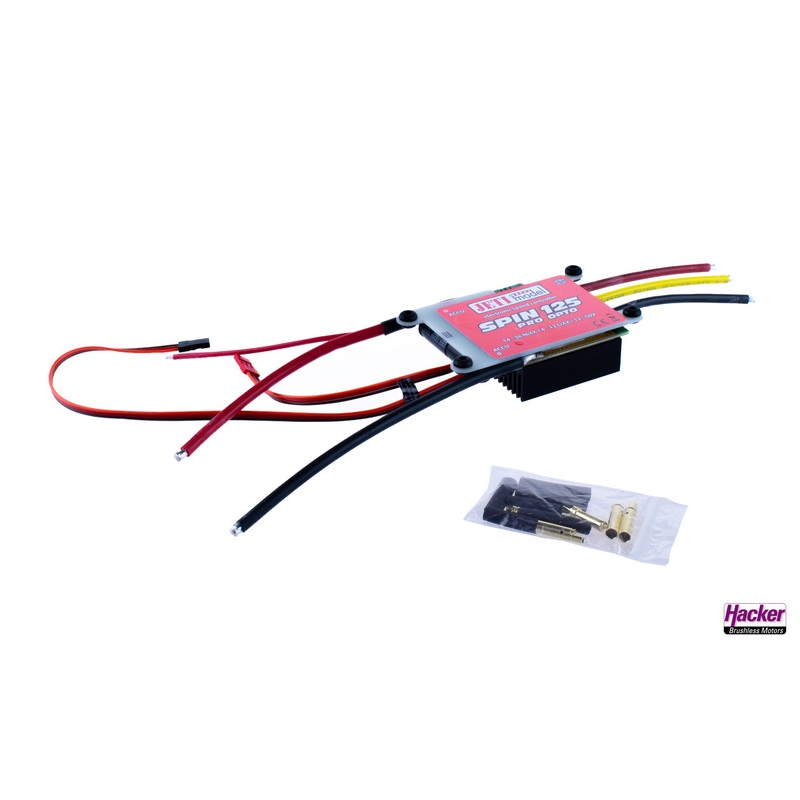 MasterSPIN 125 Pro ESC from Jeti OPTO JSP-125-O 51007010The Spin Pro series offers advanced programming features, such as To "Auto-timing" and the direct programming of the batteryvoltage to all accu types and battery requirements. Furthermore, an addition