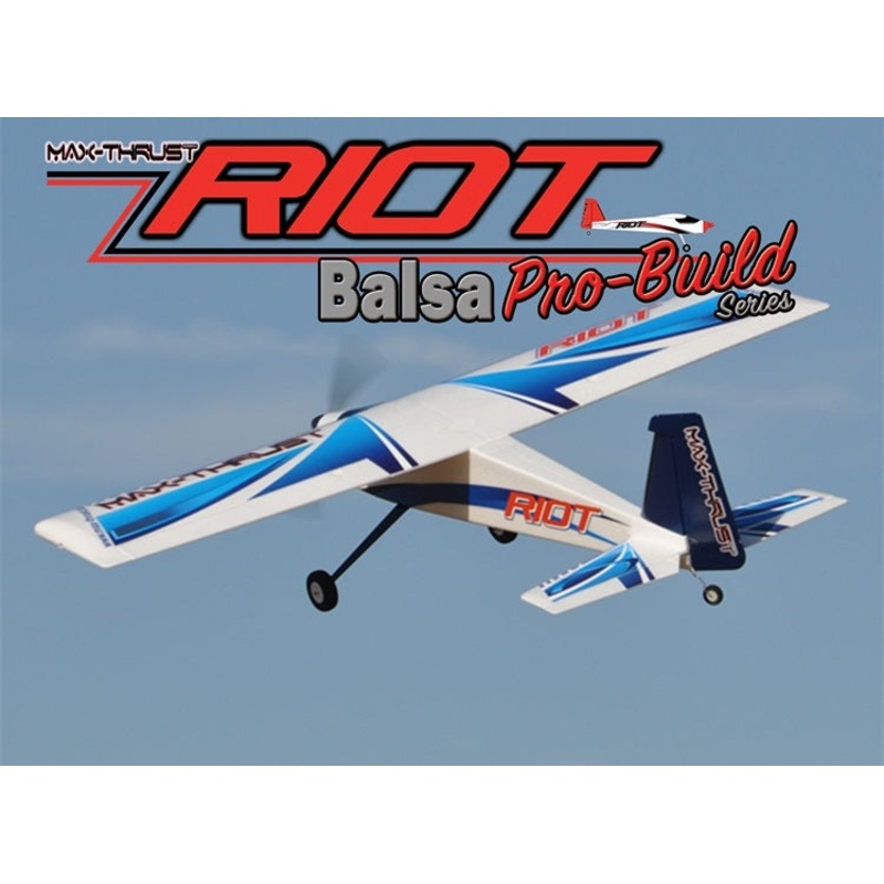 Max Thrust Pro-Build Balsa Riot ARTF Kit Blue - IC or ElectricThe Balsa Pro Build Riot is the first Foam based model to be then redesigned and produced in Balsa. We realised that there were lots of you guys out there that really like a good quality Profess