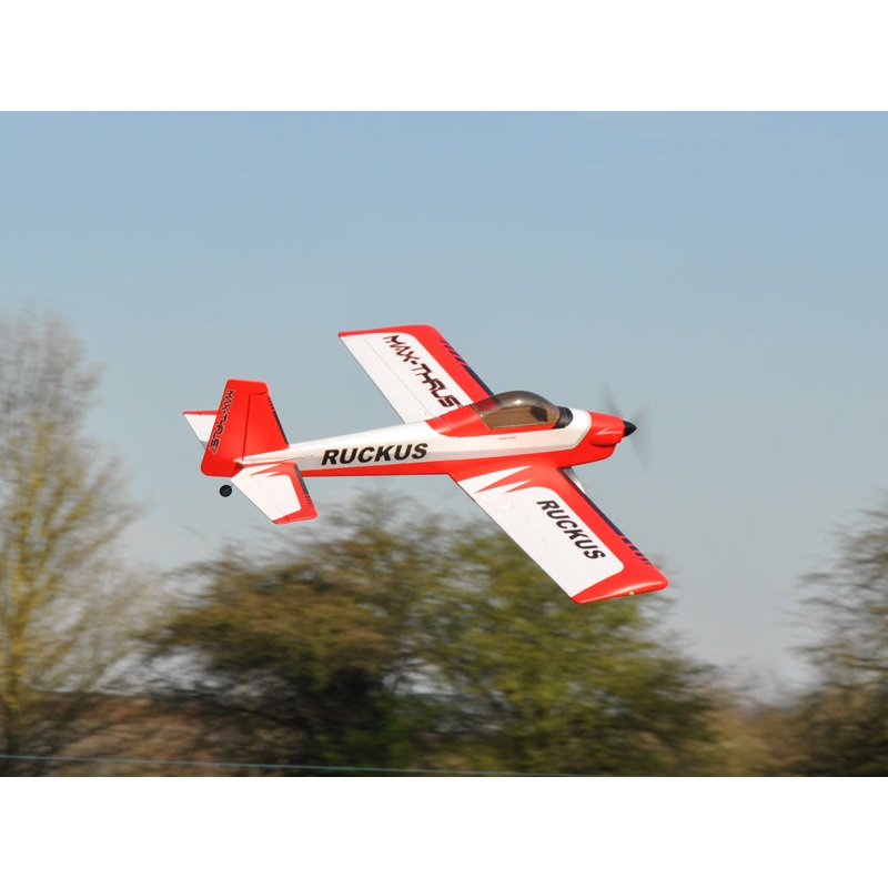 Max Thrust Ruckus PNP - Red 1-MT-RUCKUS-RAfter the success of the Riot we have been constantly asked for a follow up model that builds on all the best attributes of the Riot but in a low wing model.We think weve nailed it! Not only does the Ruckus fly supe