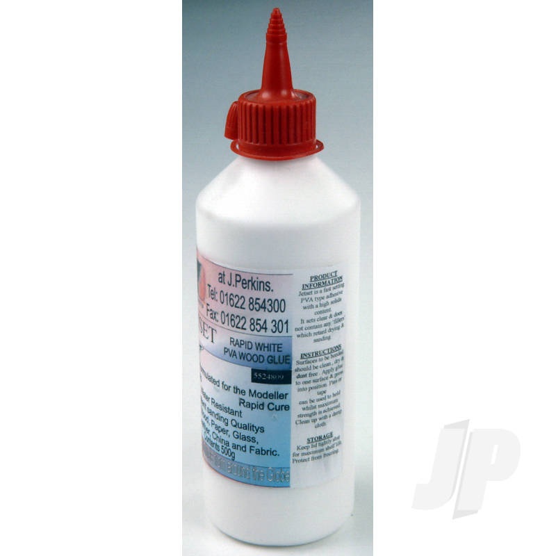 MD Jet Set Rapid PVA Glue 500g 5524809A fast-grabbing, rapid-curing white PVA glue ideal for modeling and various materials like wood, paper, glass, and fabric. It is water-resistant and sands well, making it versatile for detailed craftsmanship.500g squee