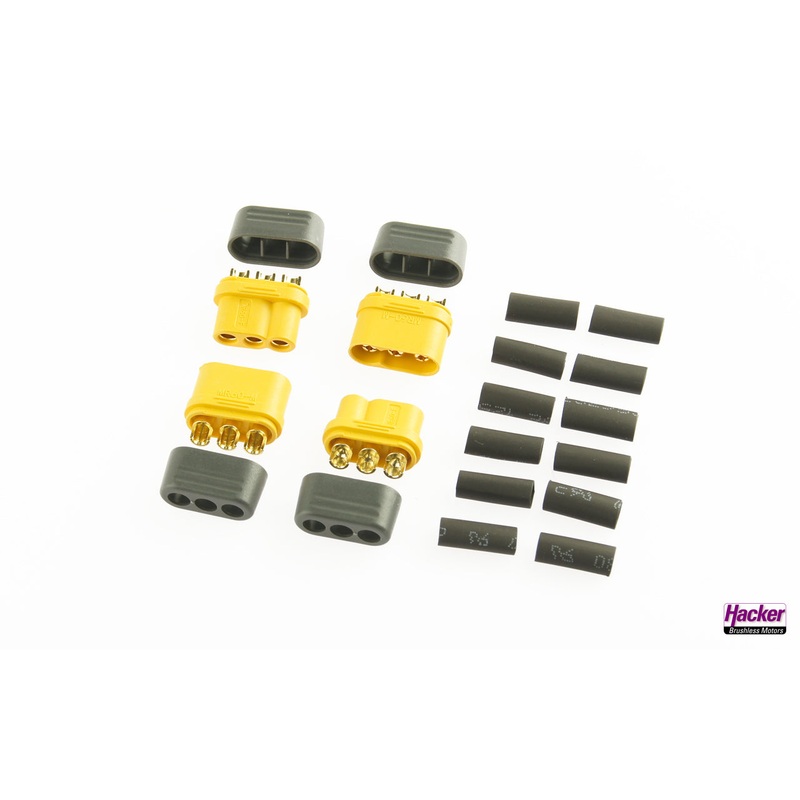 MR60 connector, plugs & sockets (2 pairs)Premium, reverse polarity protected connectors suitable e. g. for connecting motor and controller. For peak currents up to 60A.Delivery contents2x MR60 socket2x MR60 plugs4x solder cup cover12x black shrink tubing