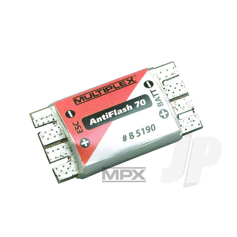 Multiplex Antiflash 70 (No Connector System) 85190When the flight battery of an electric-powered model is connected to the speed controller, arcing (sparking) occurs, and the MULTIPLEX AntiFlash 70 is designed to prevent this. This is an important advance,