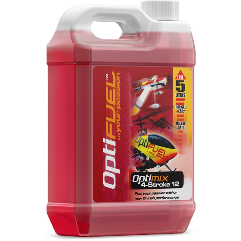 Optifuel Optimix 12 4-Stroke Nitro Glow Fuel 5L OH1220SLKOptimix-4-Stroke 12 is a new blend of low nitro 4-stroke fuel with is 12% nitromethane and 20% fully synthetic Klotz oil. The fuel is delivered in 5-litre containers instead of the traditional US gal