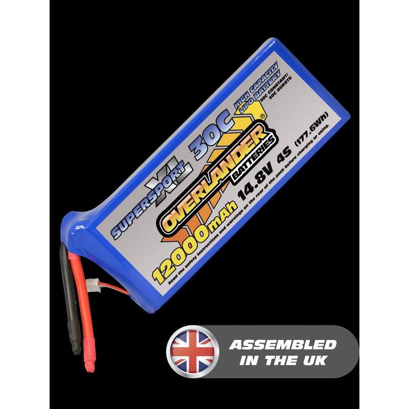 Overlander 12000mAh 14.8V 4S 30C Supersport XL LiPo Battery 2745The Overlander 12000mAh 14.8V 4S 30C Supersport XL LiPo Battery delivers exceptional power and extended run times for large-scale RC models and UAVs. With a substantial 12000mAh capacity and 1