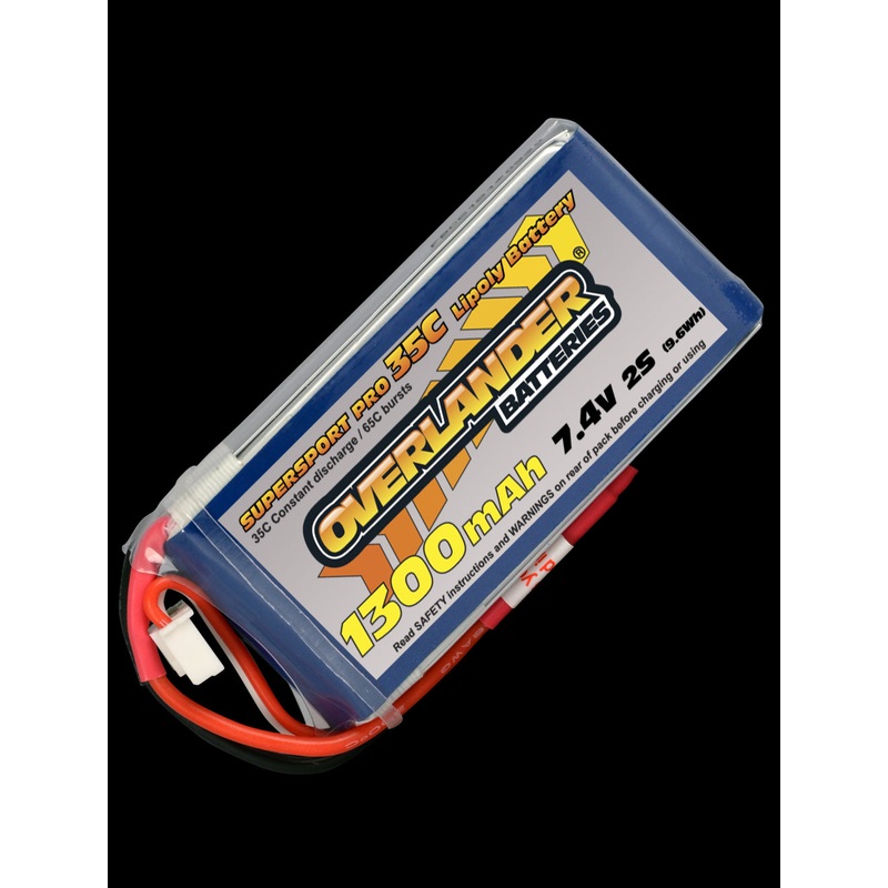 Overlander 1300mAh 7.4V 2S 35C Supersport Pro LiPo Battery 2562Power your model with the Overlander 1300mAh 7.4V 2S 35C Supersport Pro LiPo Battery. This battery delivers high performance in a small, lightweight package. At 69 x 34 x 13mm and weighing just