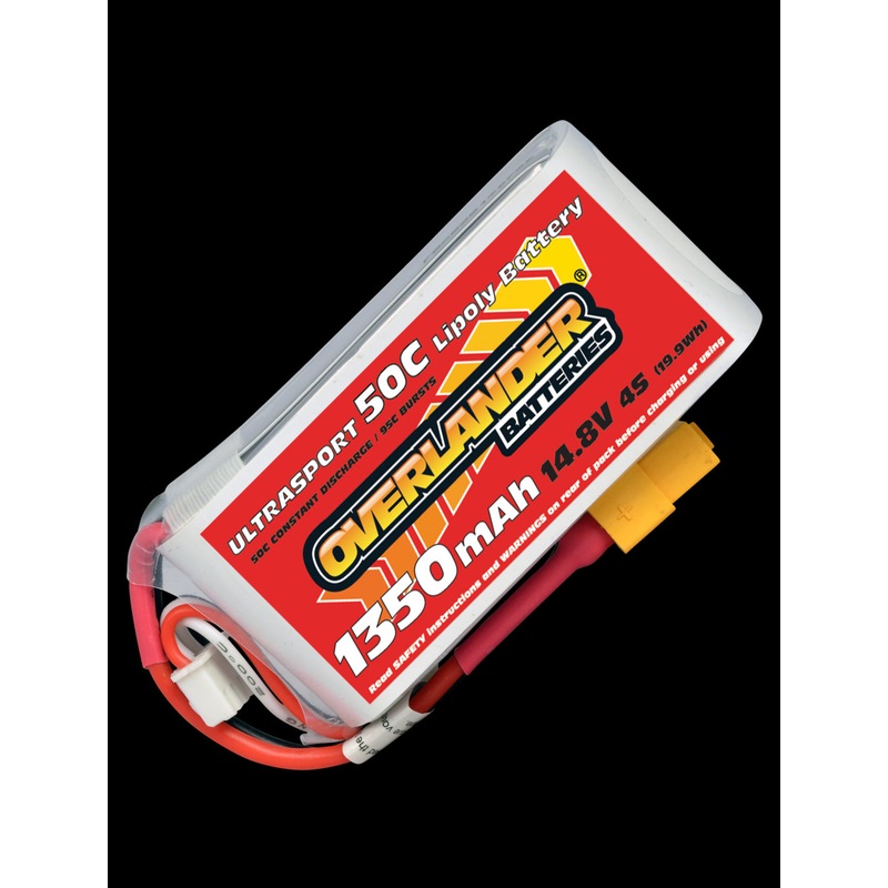 Overlander 1350mAh 14.8V 4S 50C Ultrasport LiPo Battery 3105The Overlander 1350mAh 14.8V 4S 50C Ultrasport LiPo Battery is designed for RC enthusiasts who need maximum power in a compact size. With a 4S (14.8V) configuration and a 50C discharge rate, this