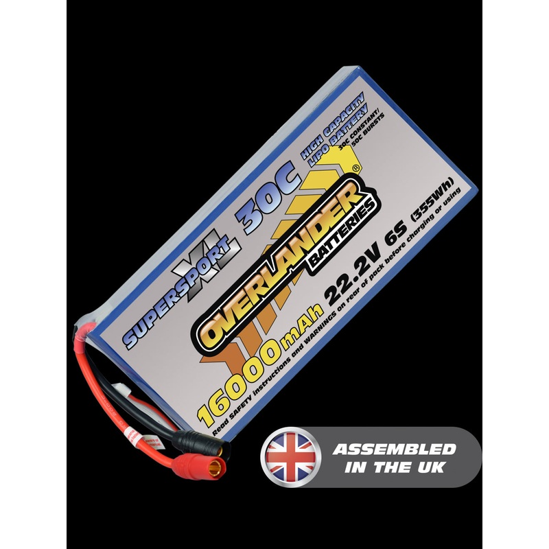 Overlander 16000mAh 22.2V 6S 30C Supersport XL LiPo Battery – AS150 Connector 3145