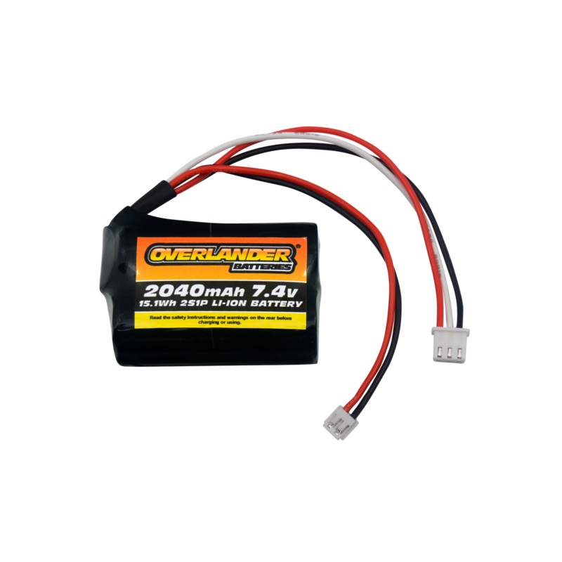 OVERLANDER 2040MAH 7.4V 2S CONFIG 2 LI-ION BATTERY 3427 This battery is made from 18500 Li-Ion cells. This battery pack is fitted with a Spektrum connector and a JST-XH balance lead. These Panasonic 2040mAh 7.4V 2S 18500 rechargeable lithium-ion (Li-Ion) b