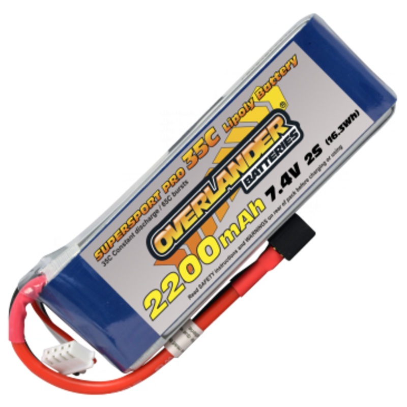 Overlander 2200mAh 2S 7.4v 35C Supersport Lipo Battery Deans 2566The 2200mAh 7.4V 2S 35C LiPo battery is part of Overlander's Supersport Pro range. This is our most comprehensive collection ever and is no doubt our most popular range of lithium batteries.