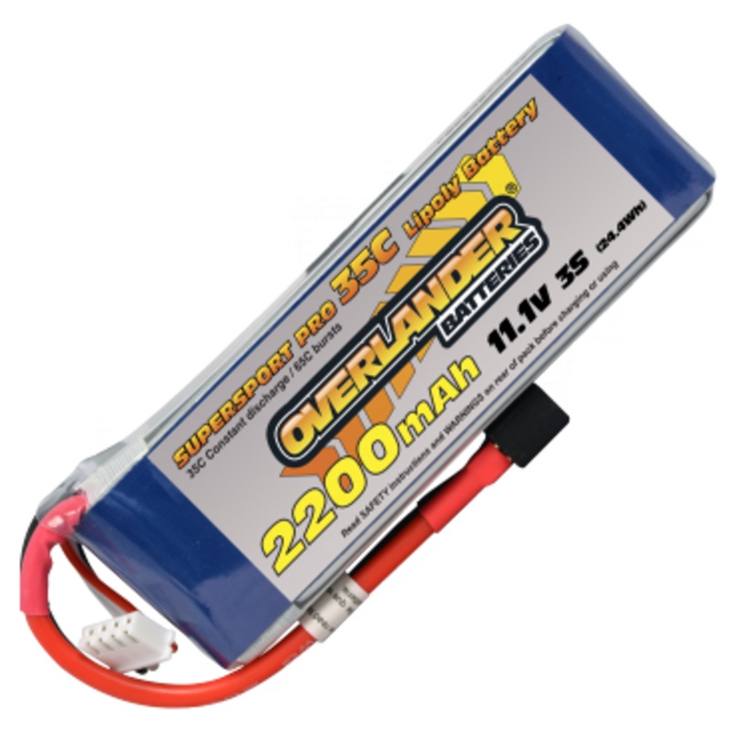 2200mAh 3S 11.1v 35C Supersport Lipo Battery from Overlander Deans Connector 2567Fully compliant LiPo batteries, choice of champions and record breakers!Supplied with deans connectorThe best just got better. Overlander NEW Sport 2200mAh 3s 11.1v 35C is par