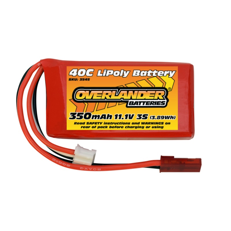 Overlander 350mAh 11.1v 3S 40c Lipo Battery 3545Overlander's 350mAh 11.1V 3S 40C LiPo batteries are fitted with a JST-XH balance lead, making them ideal for a variety of small scale models.All of Overlander's LiPo batteries are designed with optimal perfor