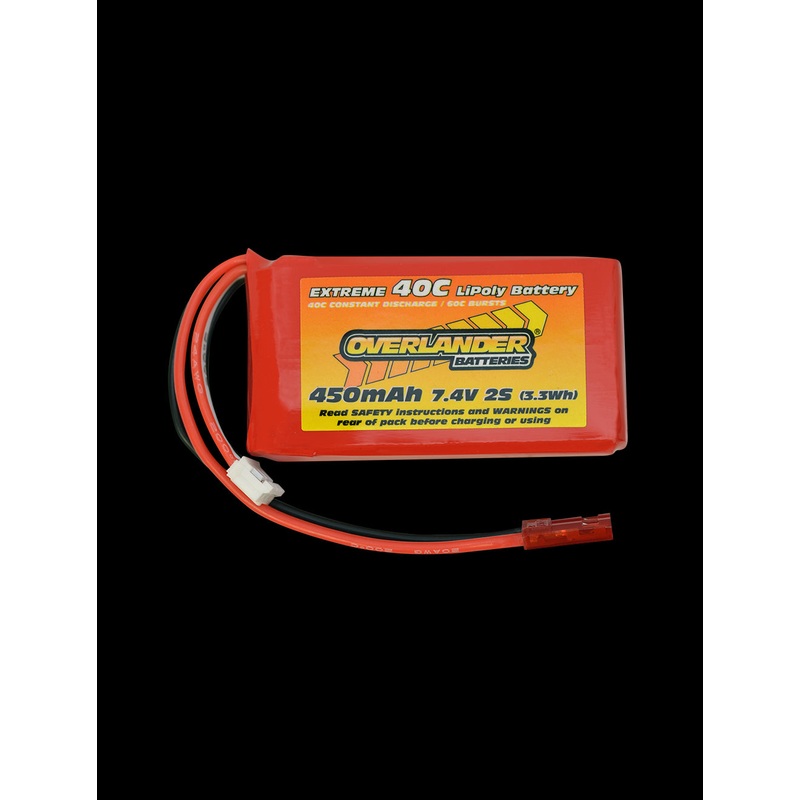 Overlander 450mAh 7.4V 2S 40C LiPo Battery - JST-BEC Connector 2506Overlander's 450mAh 7.4V 2S 40C LiPo batteries are fitted with a JST-PH balance lead, making themthe perfectupgrade orreplacement packs for the Blade 130X helicopter. A JST-PH to JST-XH con